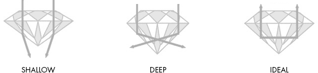 The cut of a diamond determines its brilliance or sparkle. Each shape will be cut differently. Before a diamond is cut, the location of inclusions and flaws, the natural colouration, and the original shape of the rough stone are studied extensively. The stone facets are then mapped out and cut in a way that maximizes size, shape, and clarity. For optimal light performance, you will want a diamond that is cut neither too shallow nor too deep.