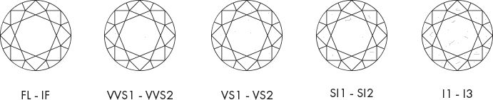 A diamond is distinguished by its natural characteristics, just as a person would be noted for her blue eyes or his brown hair. Notated as a diamond's clarity, these characteristics can be present on the surface (blemishes) or within the stone (inclusions). The clarity is judged by the number and types of these characteristics and is designated using a scale that runs from Fl, defined as flawless, to I3, defined as inclusions visible with the naked eye. A flawless diamond is truly rare.