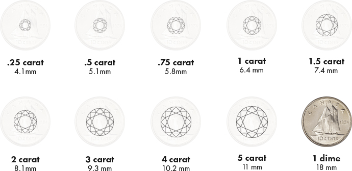 The unit of measure used for the weight of a diamond is the carat. As a matter of reference, a carat is equivalent to .2 grams or .007 of an ounce. Carat weight can also be divided further by using points. There are 100 points in one carat. So a 1/4 (.25) carat stone can also be expressed as 25 points and mean exactly the same thing. When comparing two diamonds, please note that just because one is twice the carat weight of the other does not mean that it will appear to be twice the size.